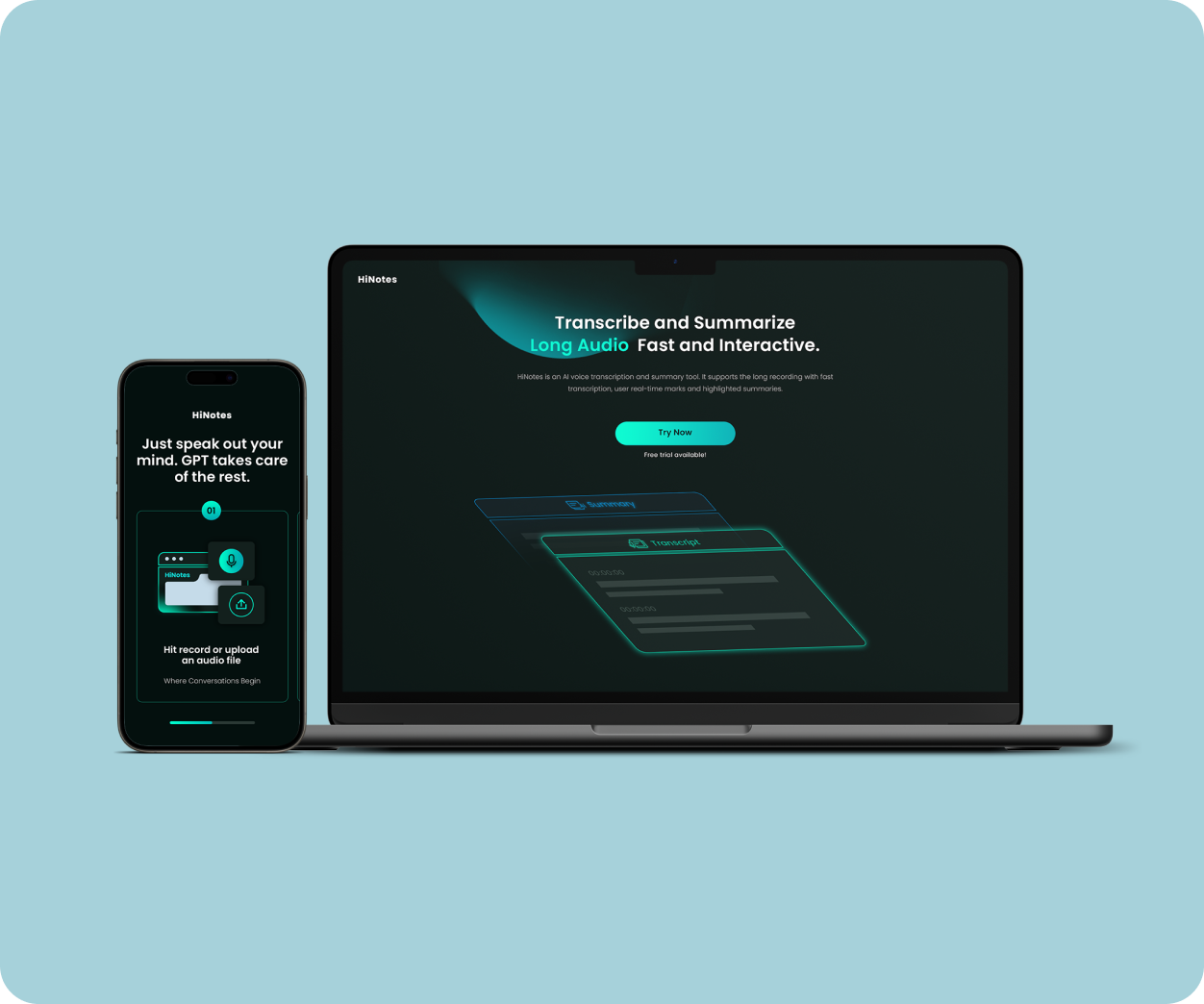 AIは単なるノイズキャンセリングのために使用されているわけではありません。文字起こし、要約を通じて生産性を向上させる最先端機能「HiNotes」を積極的に開発しています。AIによるコミュニケーションと生産性の向上をHiDockでお楽しみください。